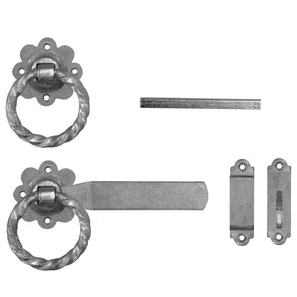 The Eliza Tinsley Galvanised Twisted Ring Gate Latch is a heavy-duty latch designed for wooden gates. Crafted from carbon steel, it ensures strength and durability. The twisted ring handle adds a traditional decorative feature, while the hot-dip galvanized coating guarantees rust-free usage throughout its lifetime. Suitable for gates up to 75mm thick, this latch provides secure closure and practical functionality.