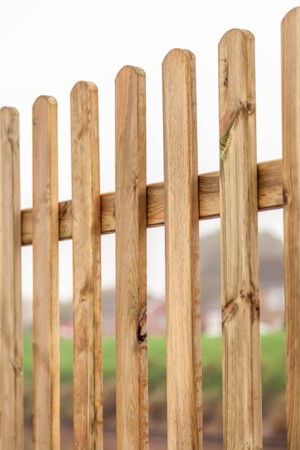 Made from treated pine or other sturdy materials, this type of fence typically features evenly spaced vertical pickets that are attached to two horizontal rails.